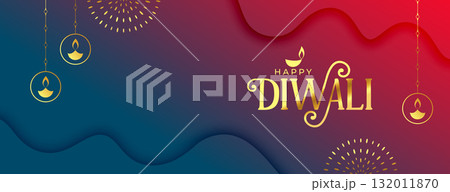 happy diwali festive event banner in papercut style