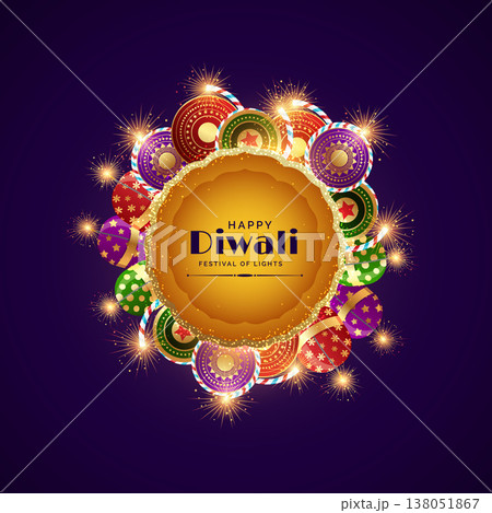 happy diwali celebration festival greeting with burning crackers