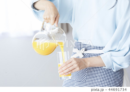 グラスにジュースを注ぐ女性