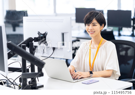ビジネス 女性 オフィス ノートパソコン