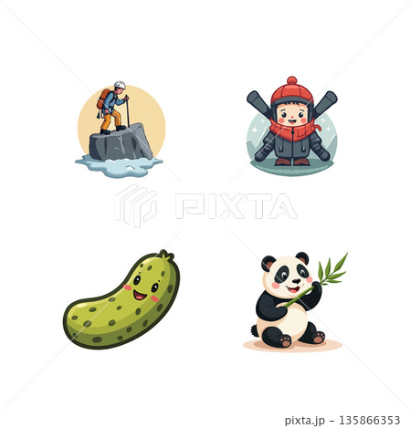 Charming cartoon character set featuring a sock, ice cube, paint bucket, and boy, all with cheerful expressions.