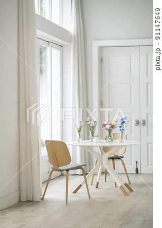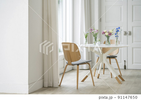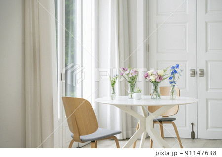 花瓶の置かれたダイニングテーブル 窓辺 花のある暮らし イメージ