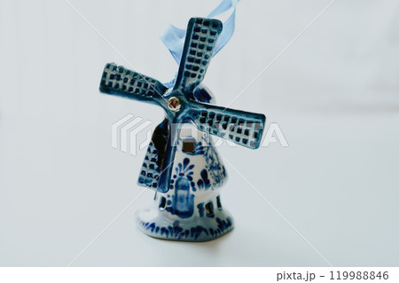 クリスマスオーナメント オランダデルフト陶器 青い風車 白背景