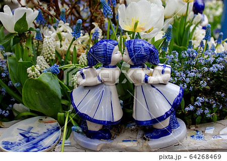 キューケンホフ公園 デルフト焼の人形とガーデニング