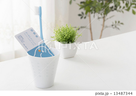 歯ブラシと診察券を持つ若い女性 歯を大切に