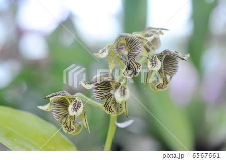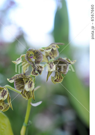 洋蘭、デンドロビウム・マクロフィルム、淡い黄緑色の花