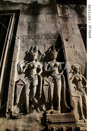 アンコール・ワット 中央祠堂の第1回廊にある「女神の彫刻」(シェムリアップ/カンボジア)