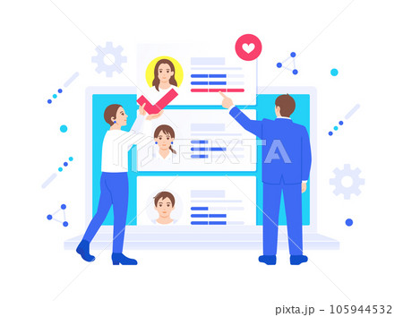 採用を検討する。アクティブな顧客を見つけるイメージのイラスト素材。