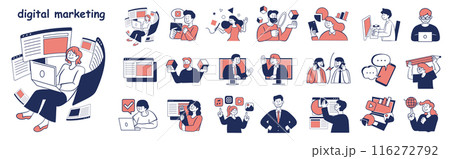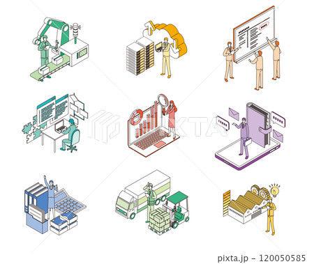 DX推進や取り組みをするビジネスパーソンのイラストセット