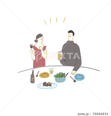 飲み会、食事をする男性と女性、恋人(乾杯、送別会、新年会、誕生日、歓迎会、忘年会)