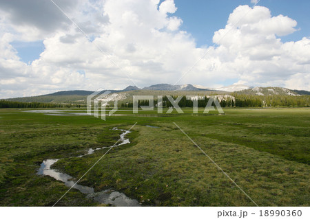 小川が流れる草原 トゥオルミ草原 ヨセミテ国立公園