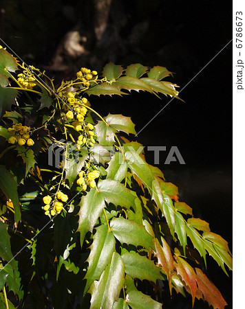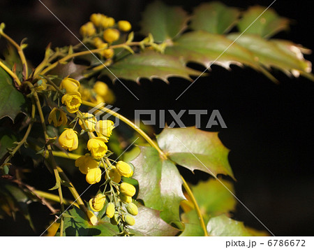 春先に房のような黄色い花を咲かせるが、葉はとげとげしいヒイラギナンテン