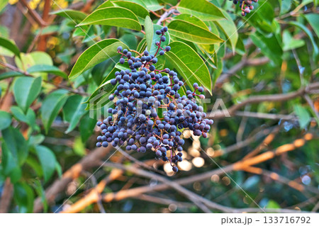 紺色のトウネズミモチの実(秋、十一月)