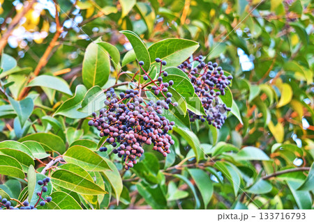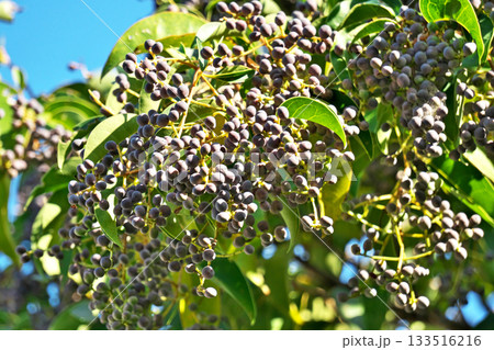 たくさんの実をつけた唐鼠黐(トウネズミモチ)