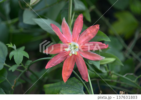 花壇の花:つる性の花、時計草の花:梅雨から夏の花