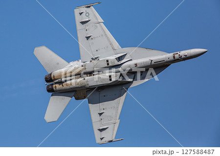 映画トップガンで有名、大空を編隊飛行する米海軍の空母艦載機FA-18Eスーパーホーネット戦闘攻撃機