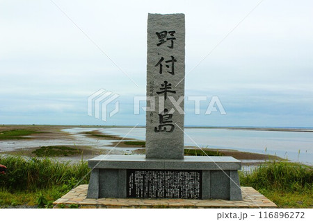 北海道、道東、野付半島、海、トドワラ、ナラワラ、風景、自然、空、晴れ、日本、波、青空、水面、海面、海