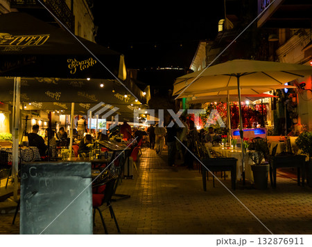 ジョージア•トビリシ、夜の旧市街のレストラン街