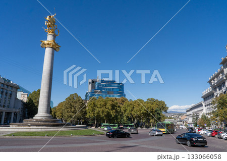 ジョージア•トビリシ、市街中心部の自由広場の光景