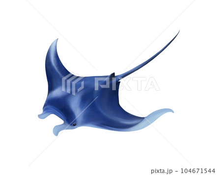 泳ぐナンヨウマンタのリアルな水彩イラスト