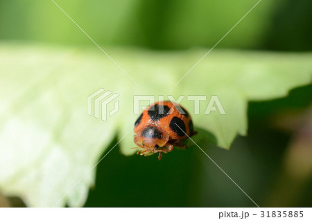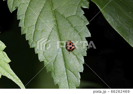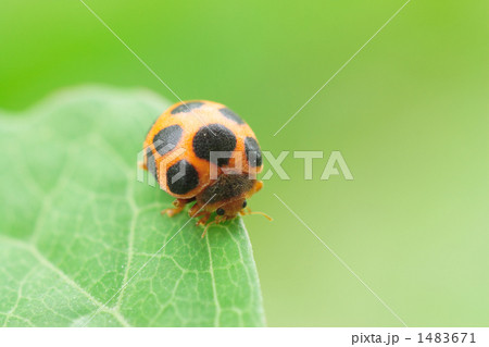 葉にとまる草食のテントウムシ「トホシテントウ」