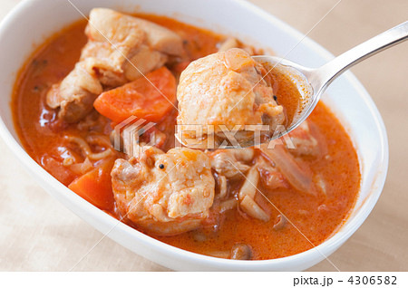 チキンのトマト煮込み イタリア料理 アップ 白背景
