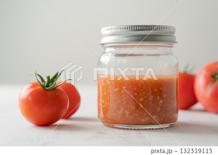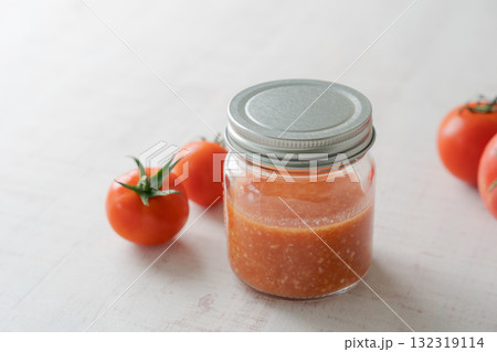 トマトとビンに入ったトマト麹