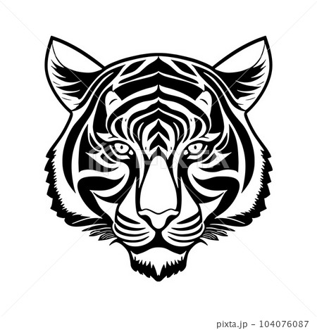 Tiger head black and white vector icon.