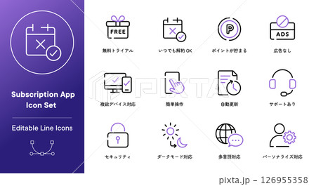 サブスクリプション アプリ向けUIアイコンセット(12種)