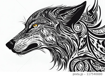白背景に黒のオオカミのトライバルイラスト