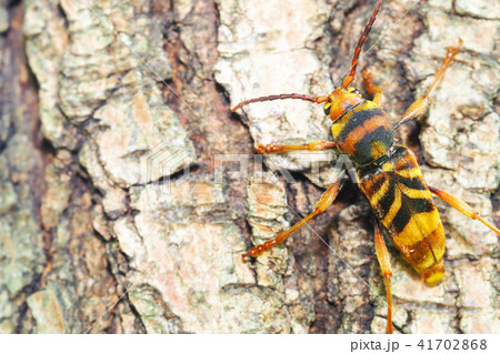 カミキリムシ 模様 触覚 トラカミキリ トラフカミキリ 蜂に擬態する虫