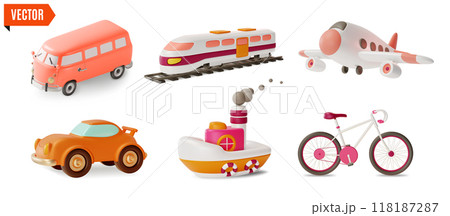 3d Travel and Tourism Transport Set Concept Cartoon Design Style Include of Car, Plane and Ship. Vector illustration