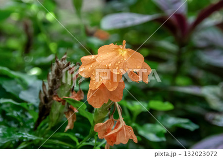 落葉性のつる性植物ノウゼンカズラの橙色の花