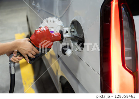 自動車イメージ 車の給油口と赤いノズル