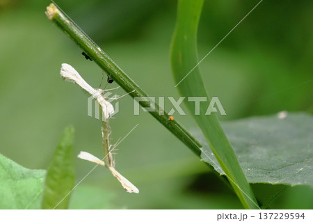 生き物 昆虫 エゾギクトリバ、九月交尾中の個体。幼虫はキク科植物の葉や茎を食害するそうです