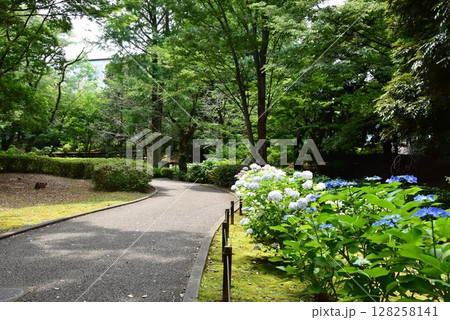 横浜市神奈川区 三ツ沢公園園路(トリムコース)と紫陽花