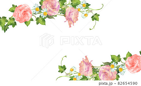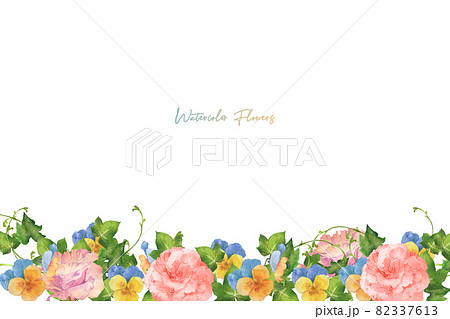 水彩のトルコギキョウとパンジーのフレーム