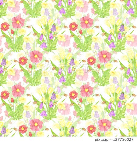 Hand drawn watercolor wildflowers bouquets seamless pattern. Flower of the field isolated on white background. Can be used for textile, fabric, scrapbook and other printed products.