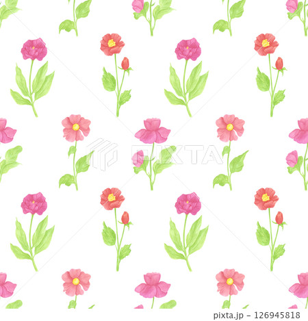 Hand drawn watercolor poppy anemone wildflowers seamless pattern. Flower of the field isolated on white background. Can be used for textile, fabric, scrapbook and other printed products.