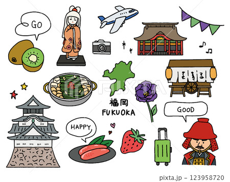 福岡の手描きイラストセット