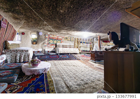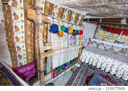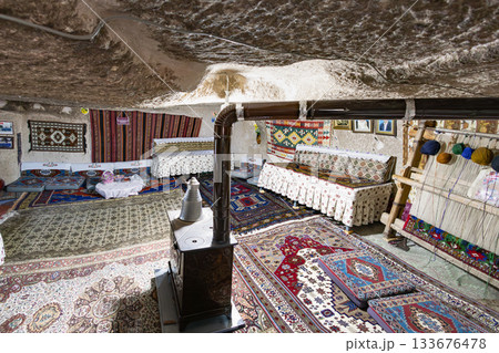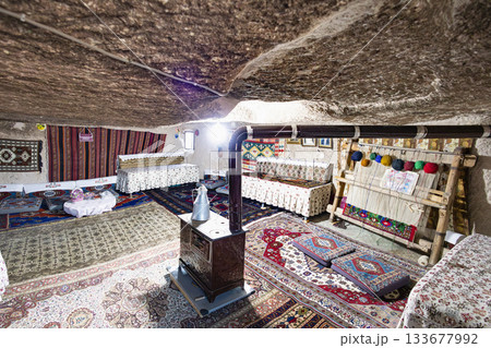 カッパドキア世界遺産の洞窟の家 トルコ絨毯織器