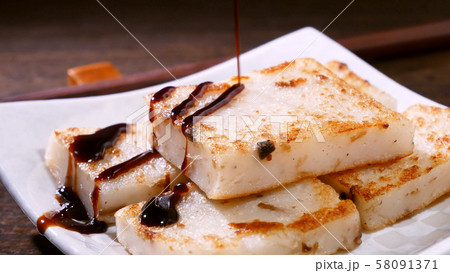 蘿蔔糕 菜頭粿 醬汁 Pouring sauce Turnip cake ルオポガオ 大根ケーキ