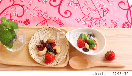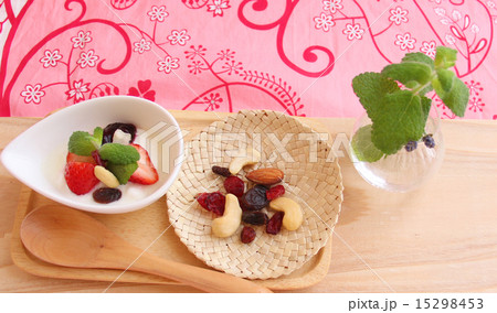 トレイルミックスとドライフルーツを入れたヨーグルト