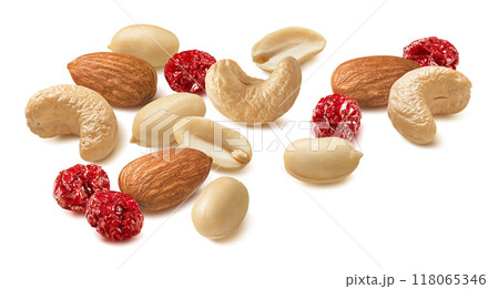Almond, cashew, peanuts and dried cranberry isolated on white background