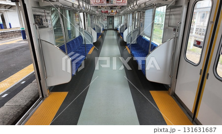 誰もいない電車の車内風景