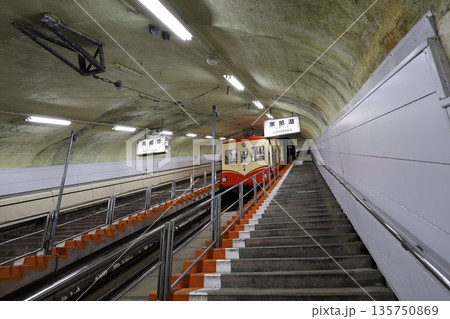 駅に停車する黒部ダムのケーブルカー