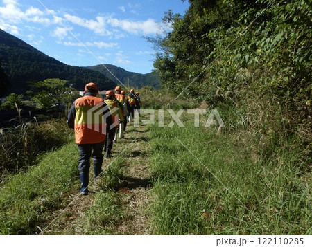 山歩きするシニア夫婦の後姿