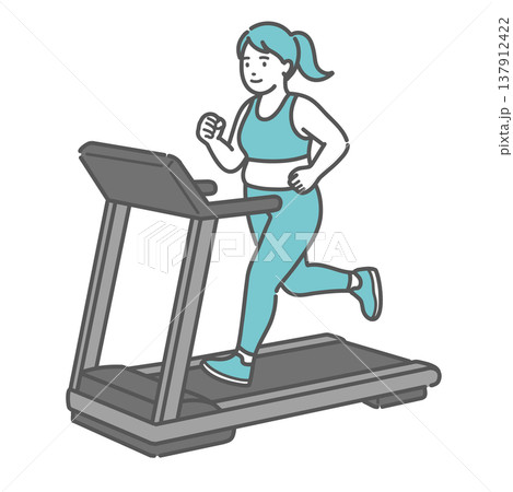 トレッドミル(ランニングマシン)で走る女性のイラスト