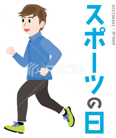 スポーツの日のイラスト文字とゲートボールをするシニア男性