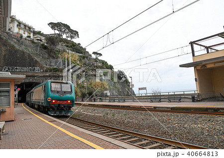 チンクエ・テッレ(イタリア・リグーリア州) モンテロッソ駅を出発する列車